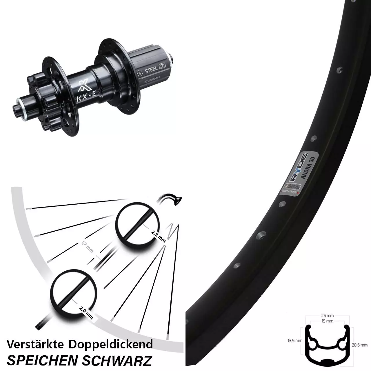 Technische Daten Hinterrad Ryde Andra 30 Disc schwarz und Nabe KX-E Hinterradnabe 6-Loch 5/135 Shimano 11-fach schwarz