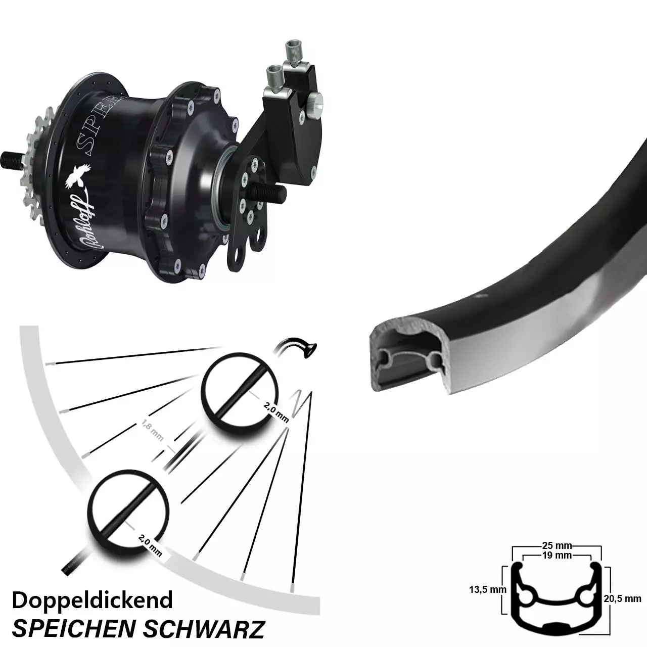 Technische Daten Hinterrad Ryde Andra 30 Felgenbremse schwarz und Nabe Rohloff Speedhub 500/14 TS EX schwarz