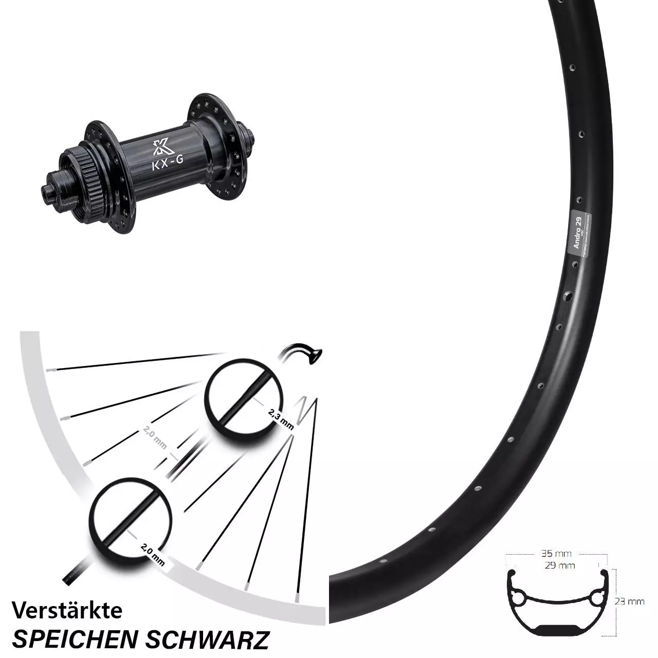 Technische Daten Vorderrad Ryde Andra 29 Disc schwarz mit Nabe KX-G Vorderradnabe 5/100 Centerlock
