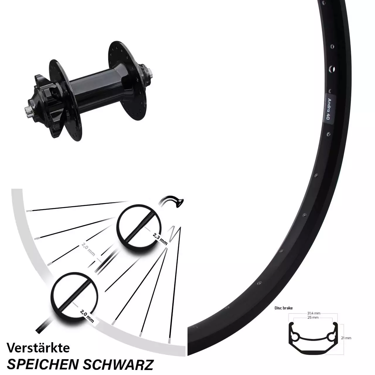 Technische Daten Vorderrad Ryde Andra 40 Disc schwarz mit Nabe Formula DC-91 V2 6-Loch schwarz