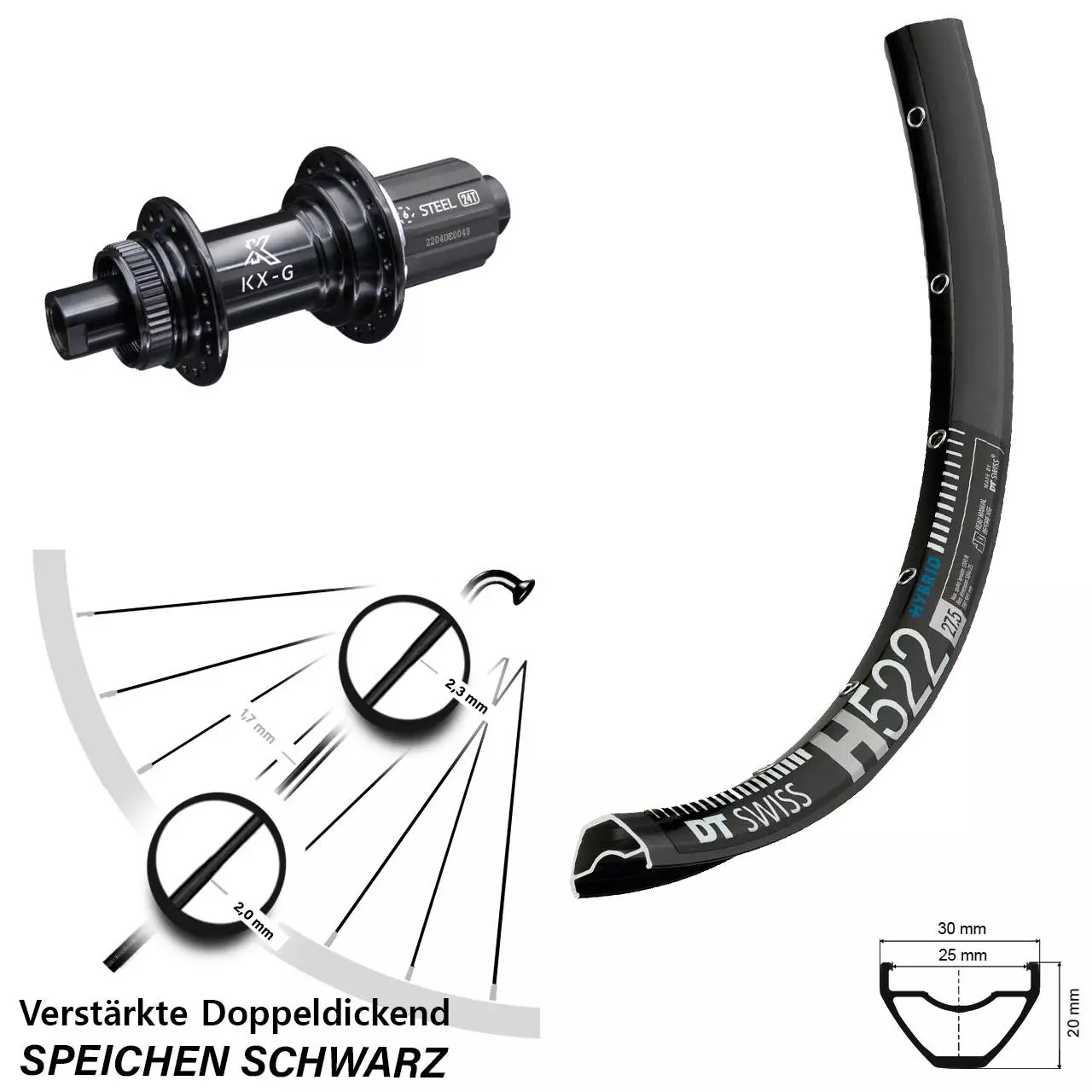 - DT Swiss H 522 Hinterrad 27,5 Zoll mit KX-GS 12×142 mm Centerlock Nabe verstärkt E-Bike
