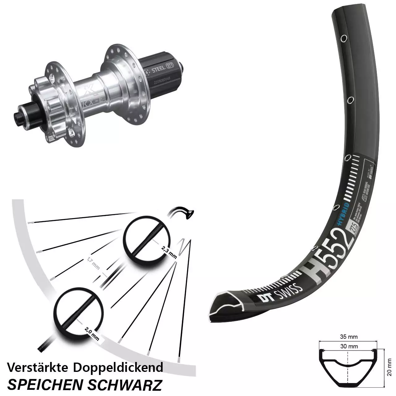 Technische Daten Hinterrad DT Swiss H 552 Disc schwarz und Nabe KX-E Hinterradnabe 6-Loch 5/135 Shimano 11-fach silbern