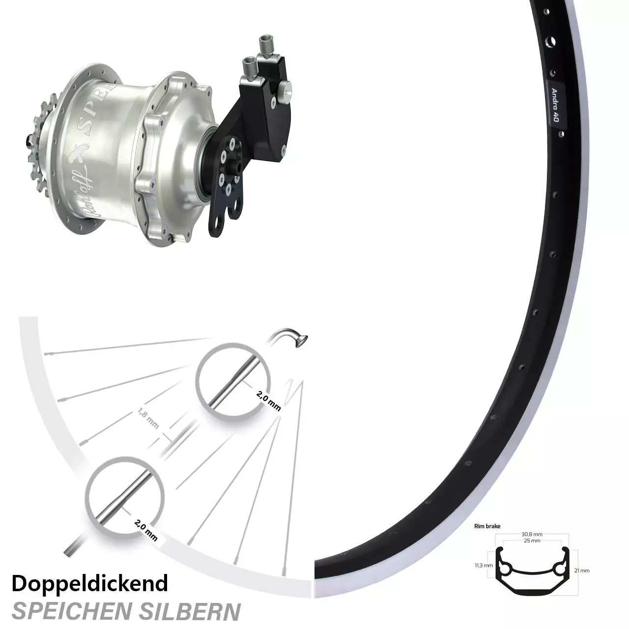 Technische Daten Hinterrad Ryde Andra 40 Felgenbremse schwarz und Nabe Rohloff Speedhub 500/14 CC EX silbern