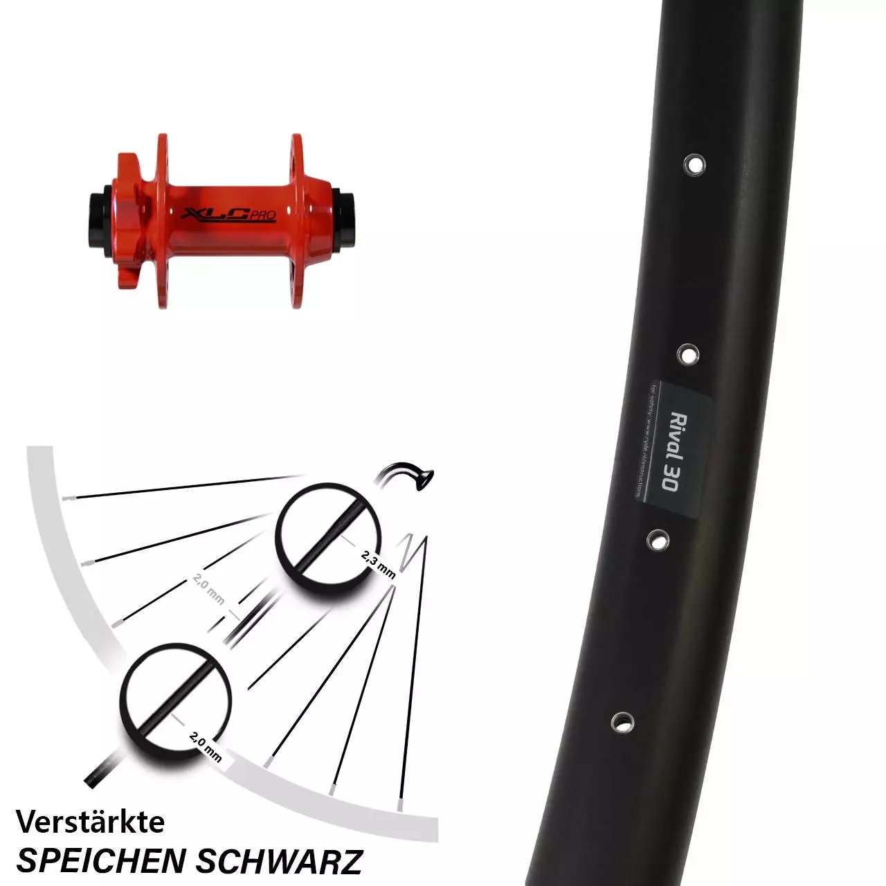 Technische Daten Vorderrad Ryde Rival 30 Disc schwarz mit Nabe XLC Pro VR Disc rot Steckachse