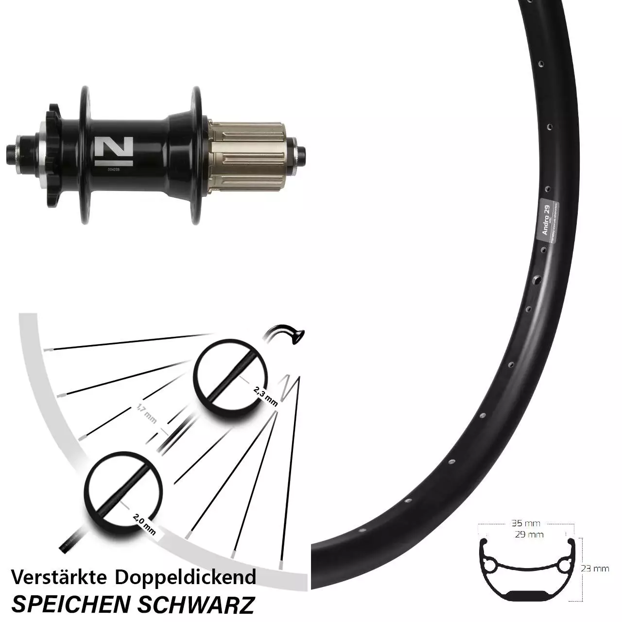 Technische Daten Hinterrad Ryde Andra 29 Disc schwarz und Nabe Novatec D042SB schwarz