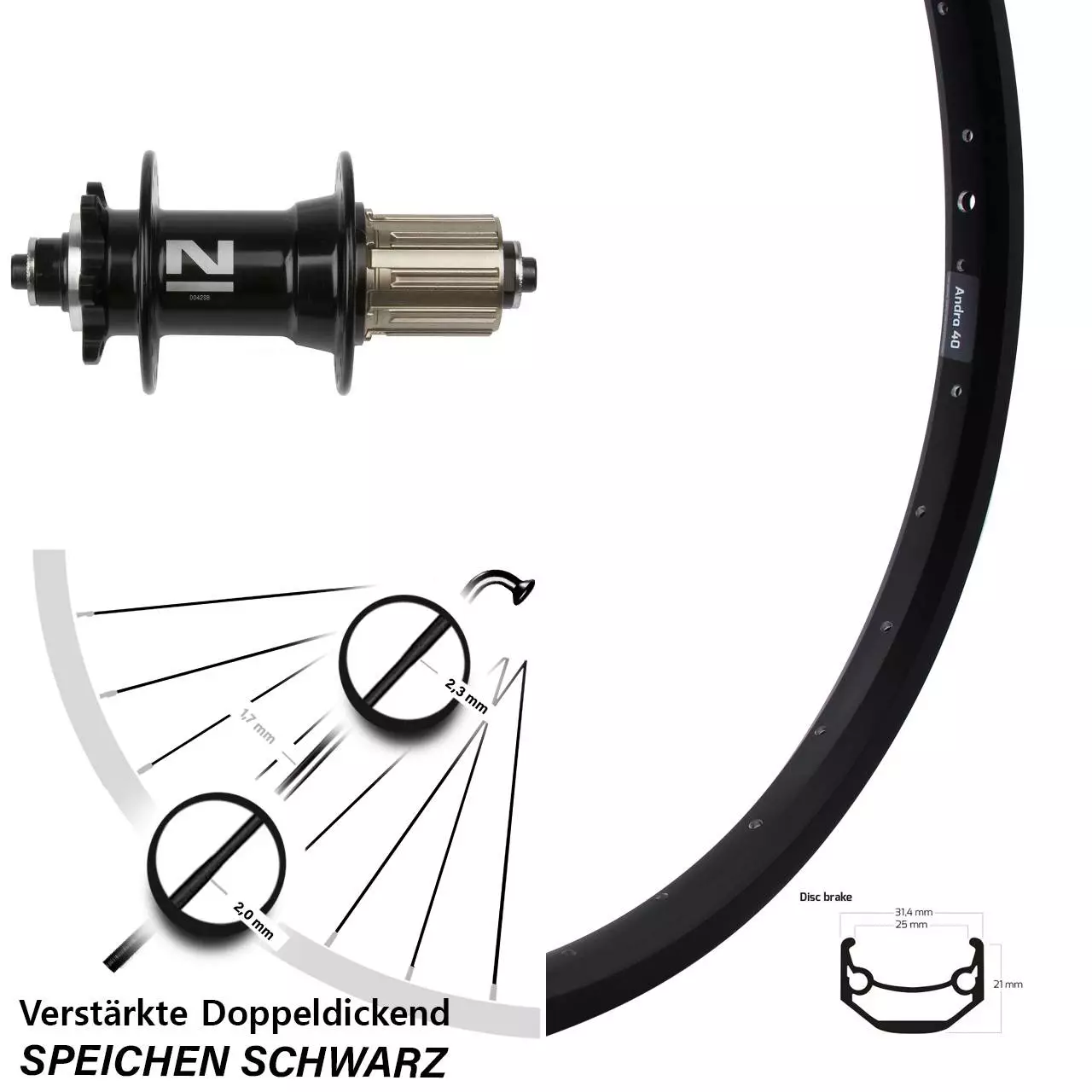 Technische Daten Hinterrad Ryde Andra 40 Disc schwarz und Nabe Novatec D042SB schwarz