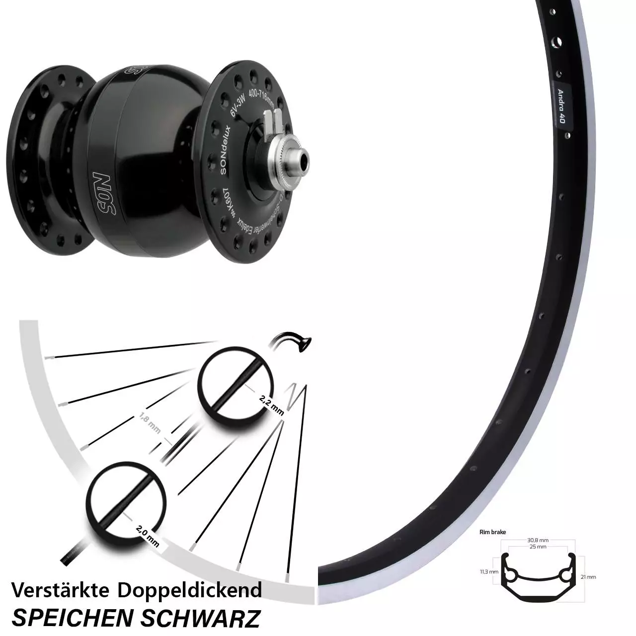 Ryde Andra 40 28-29 Zoll Vorderrad Nabendynamo mit Son delux Wide Body mit verstärkten Doppeldickendspeichen