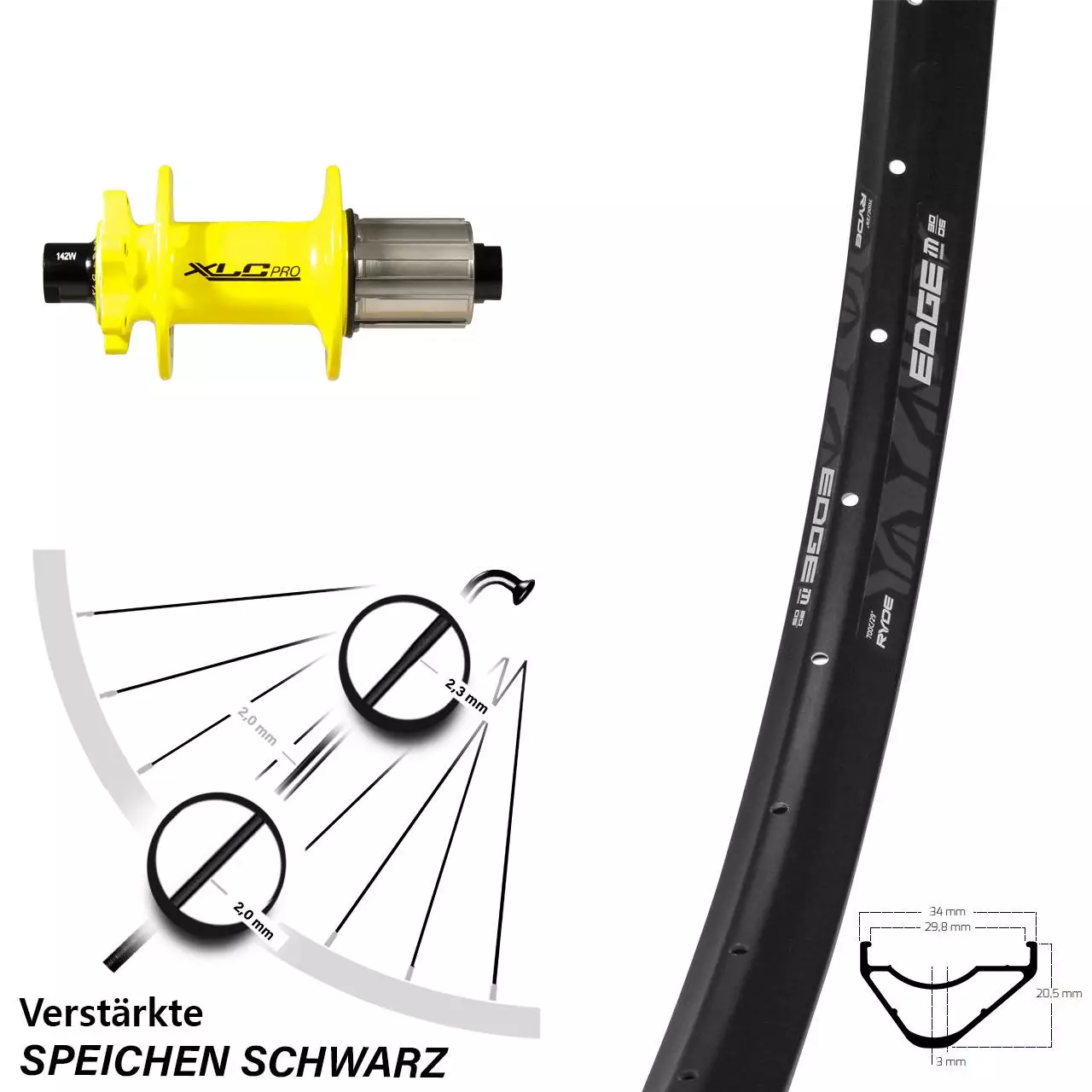 Ryde Edge M30 OS Hinterrad 27,5 Zoll mit XLC Evo gelb Nabe 12/142 mm mit verstärkten Speichen