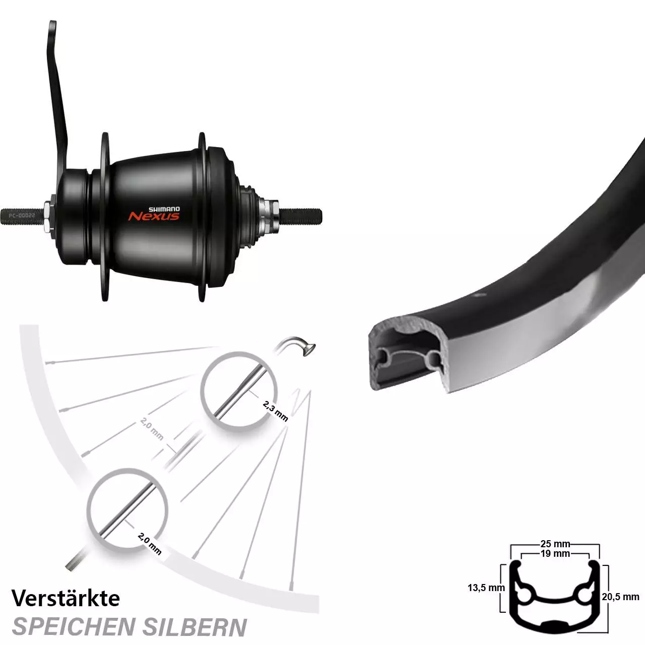 Ryde Hinterrad 26 Zoll Andra 30 Shimano Nexus 7-Gang mit Rücktritt mit verstärkten Speichen