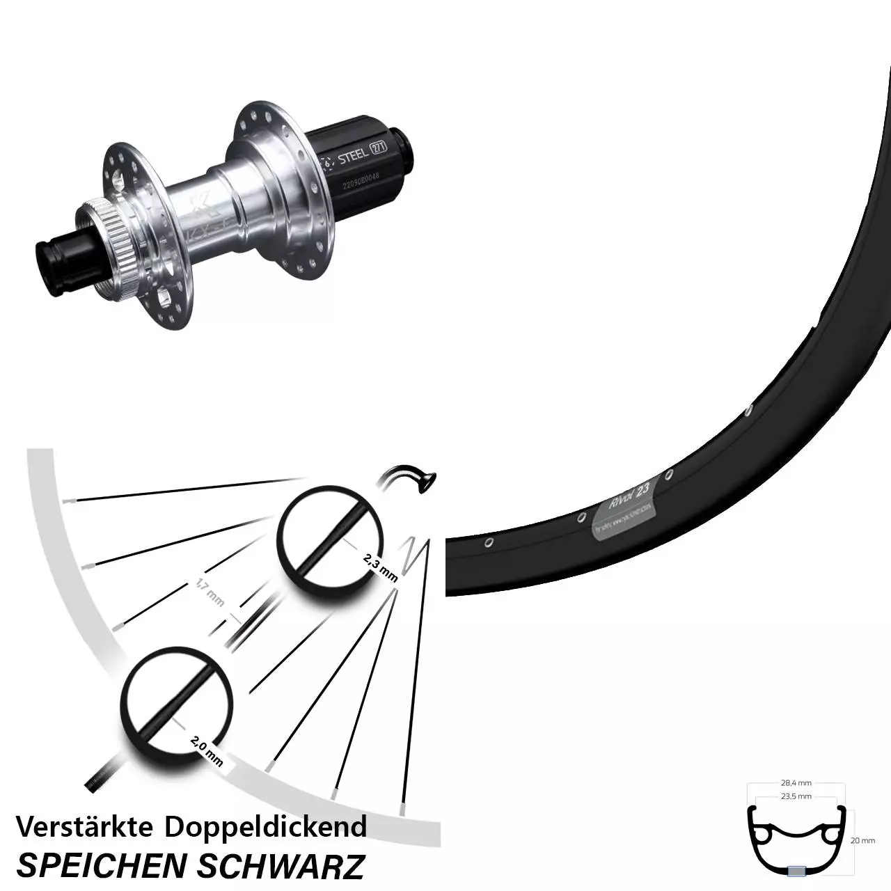 Technische Daten Hinterrad Ryde Rival 23 Disc schwarz und Nabe KX-E Hinterradnabe Centerlock 12/142 Shimano 11-fach silbern