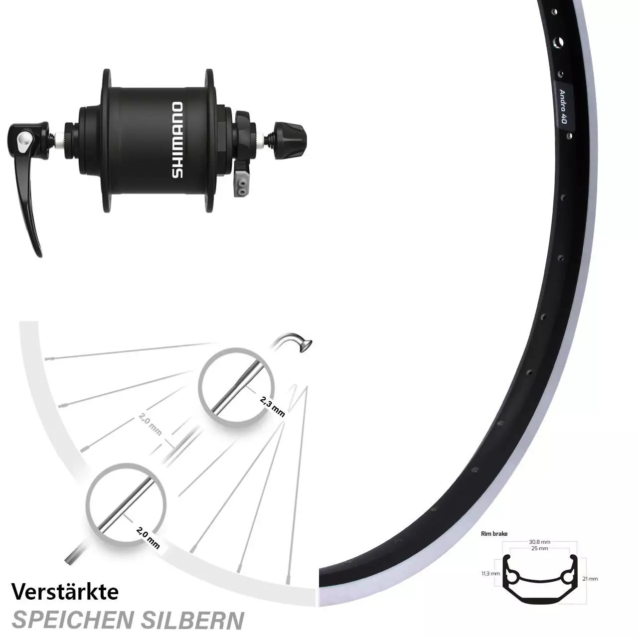 Technische Daten vorderes Laufrad Ryde Andra 40 Felgenbremse schwarz & Nabendynamo Shimano DH-T4000-1N schwarz