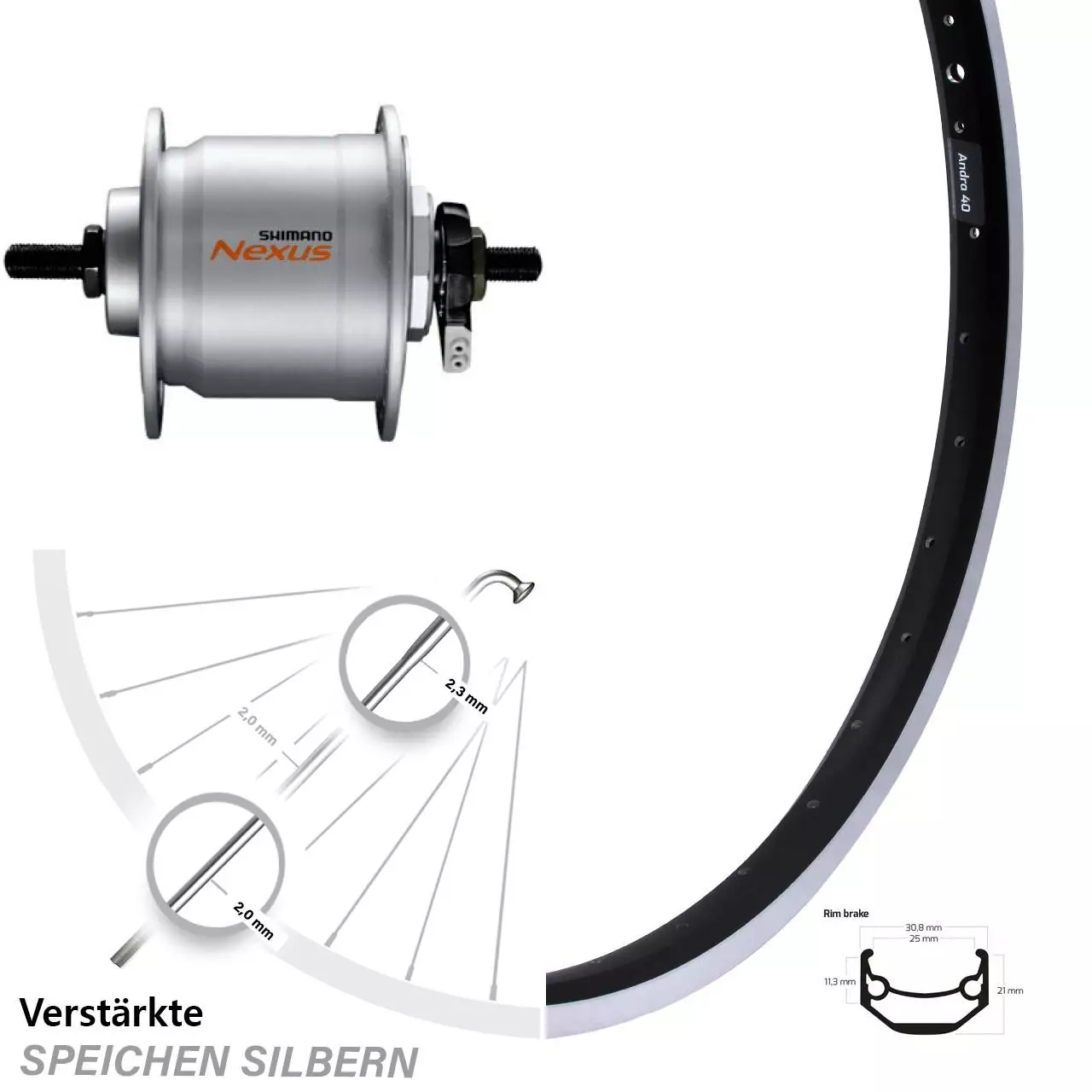 Technische Daten vorderes Laufrad Ryde Andra 40 Felgenbremse schwarz & Nabendynamo Shimano DH-C3000-3N silbern Mutterntyp